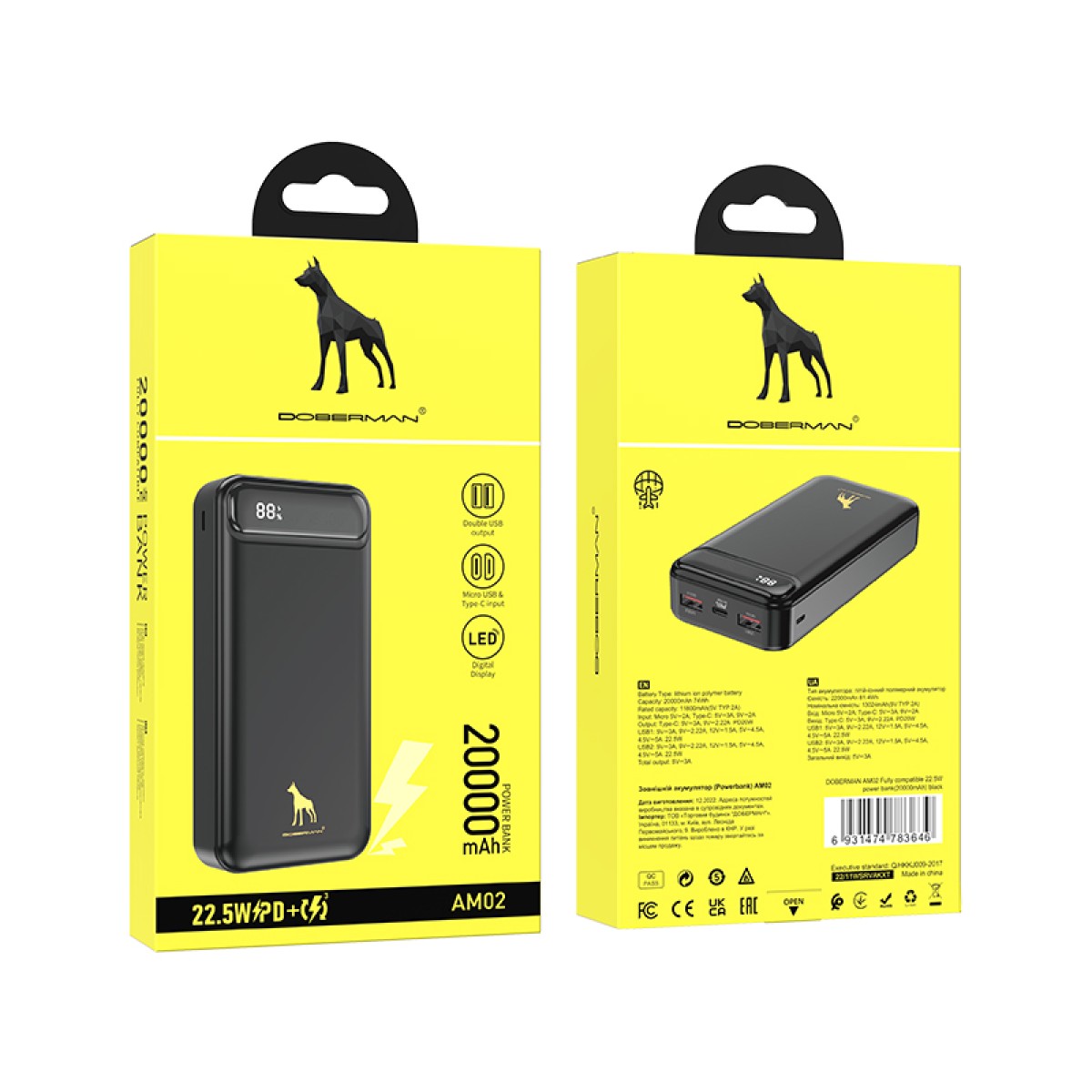 Dobberman AM02 – 20000 mAh PD 22.5W 2 x USB-A Fast Charging Powerbank