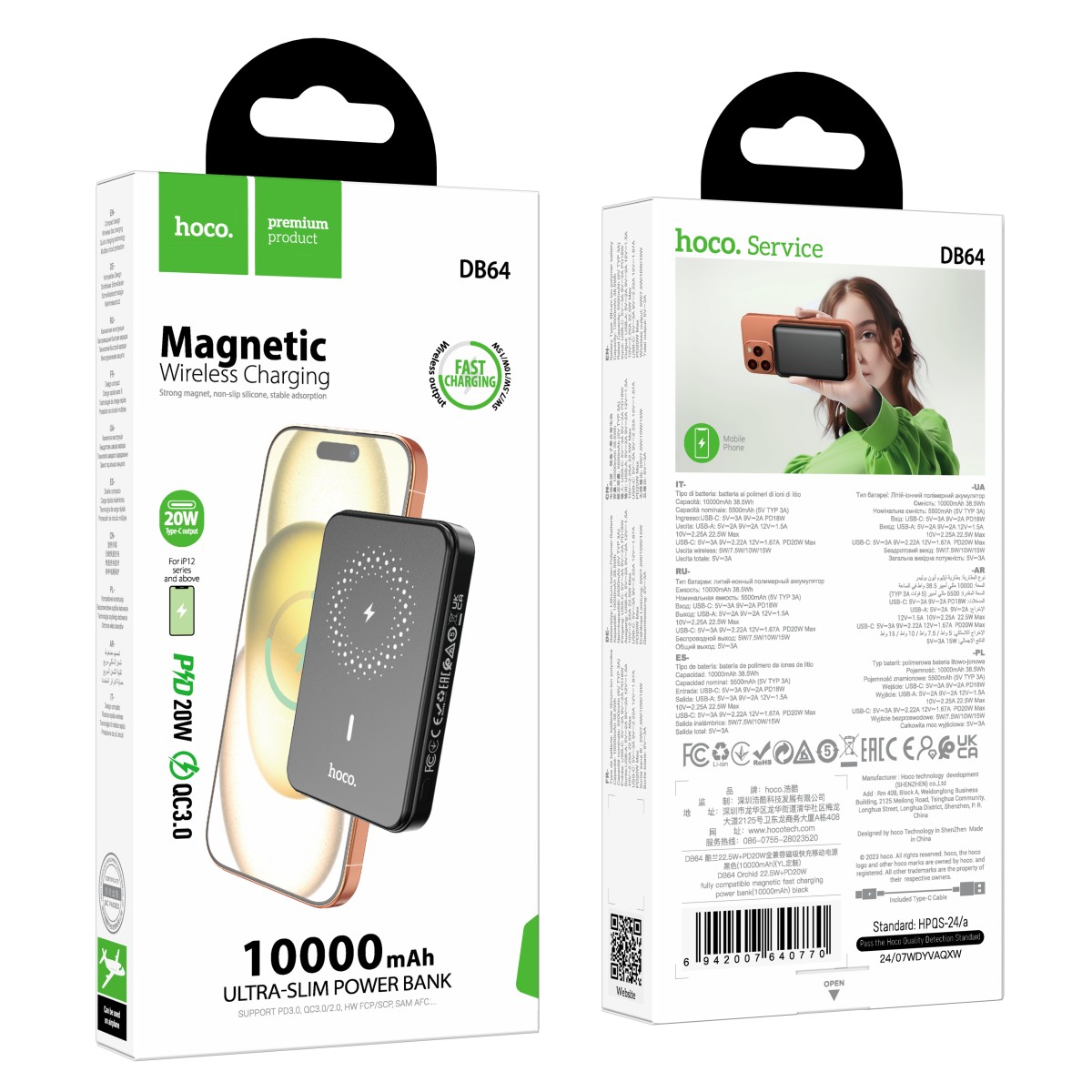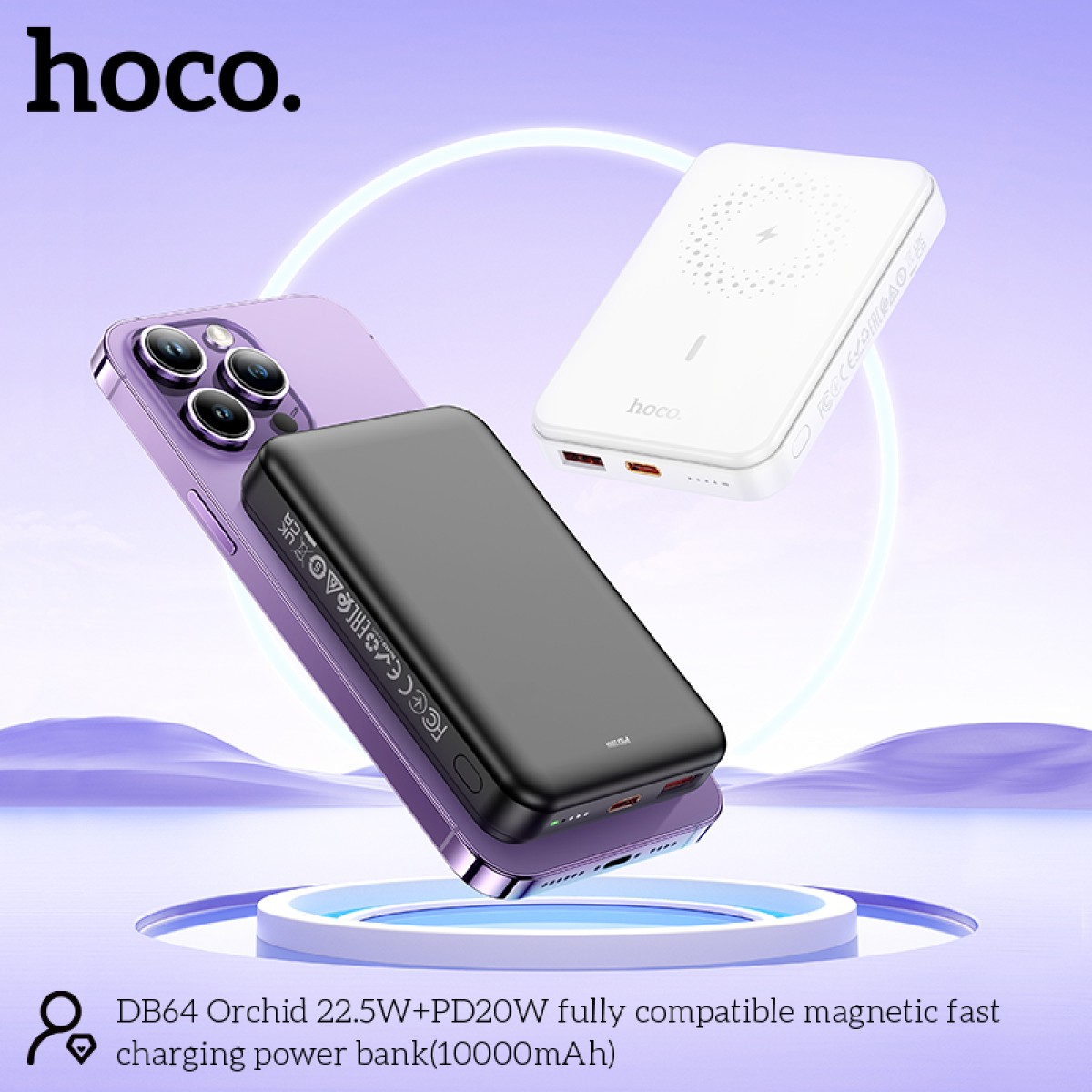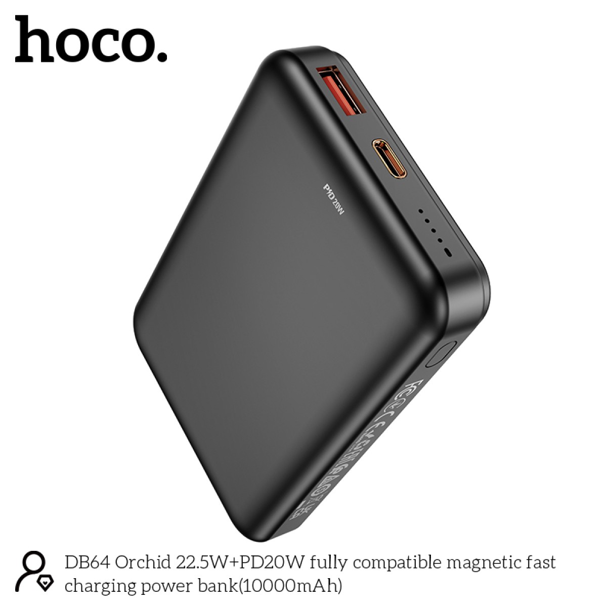 Hoco DB64 – 10000 mAh Fast Charge MagSafe Magnetic Wireless Charger – Zwart