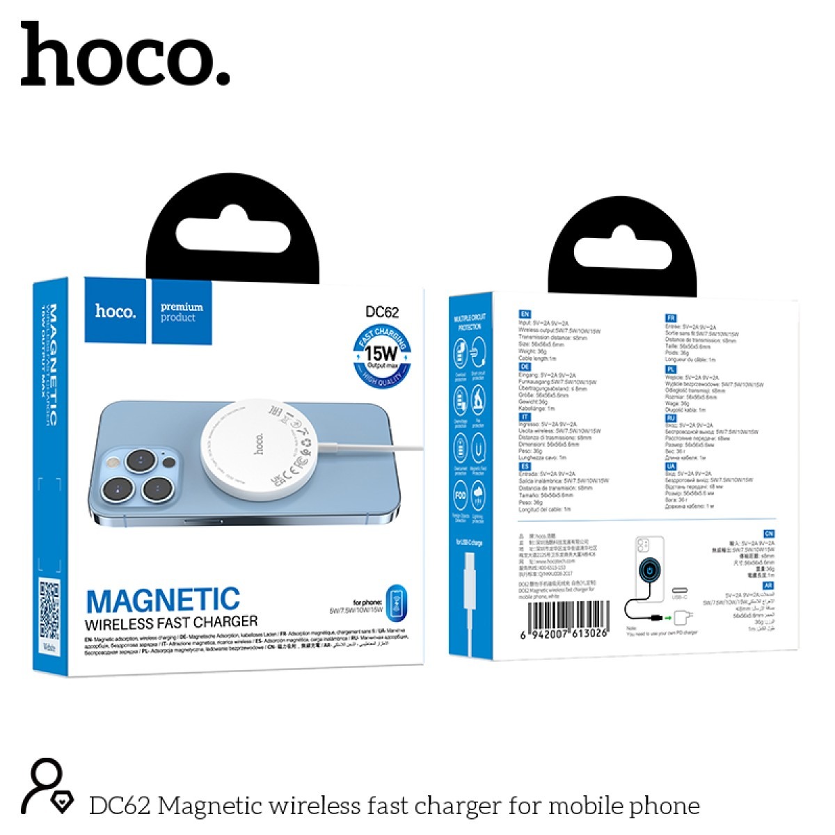 Hoco DC62 Magnetic Wireless Fast Charger 15W – Wit