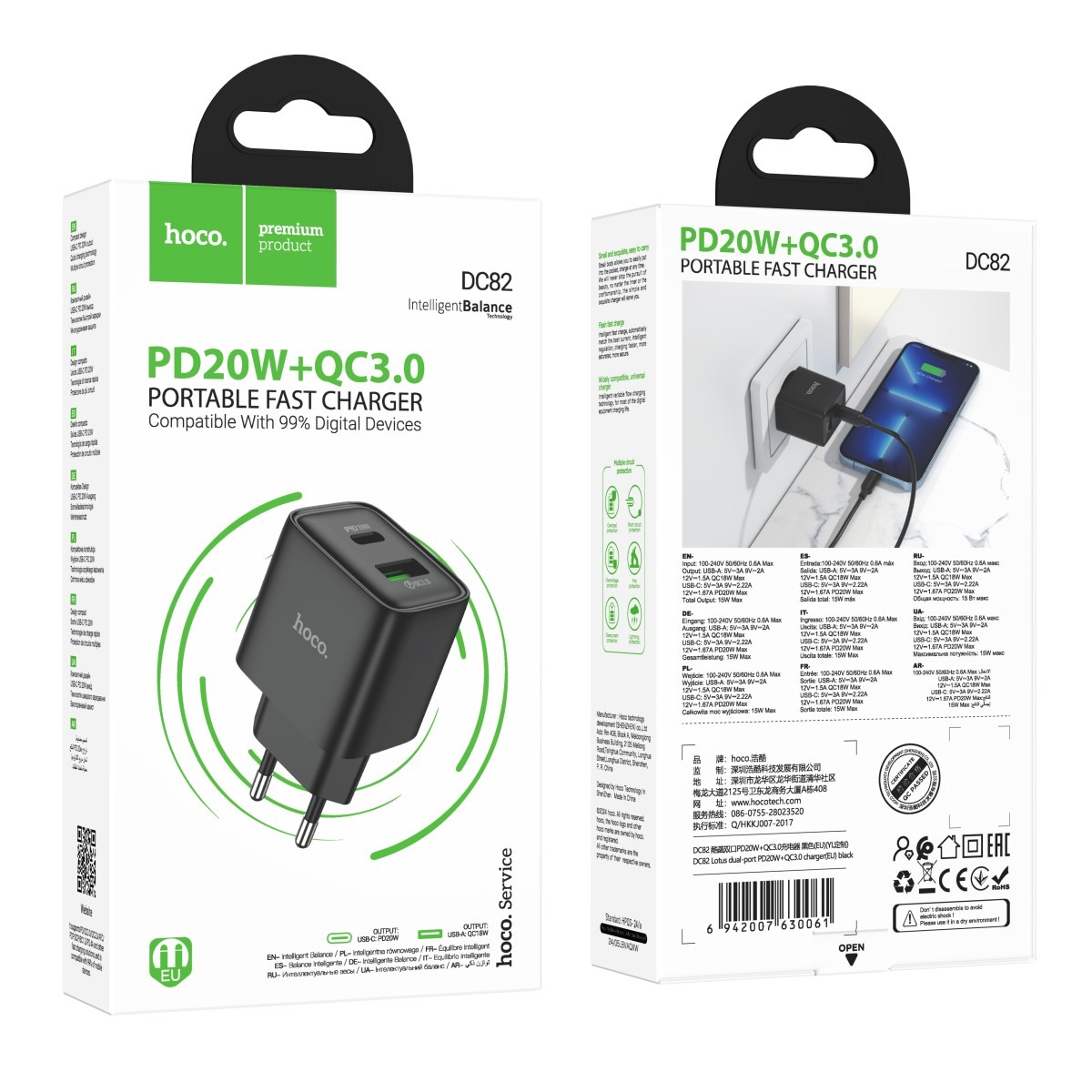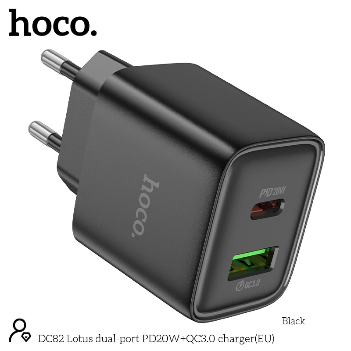 Hoco DC82 PD 20 Watt Dual Port Super Fast Charger – Zwart
