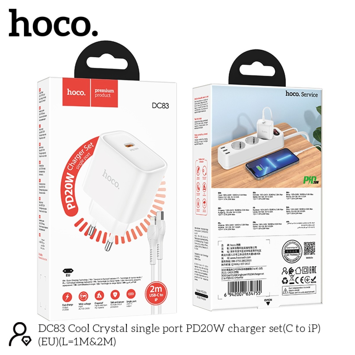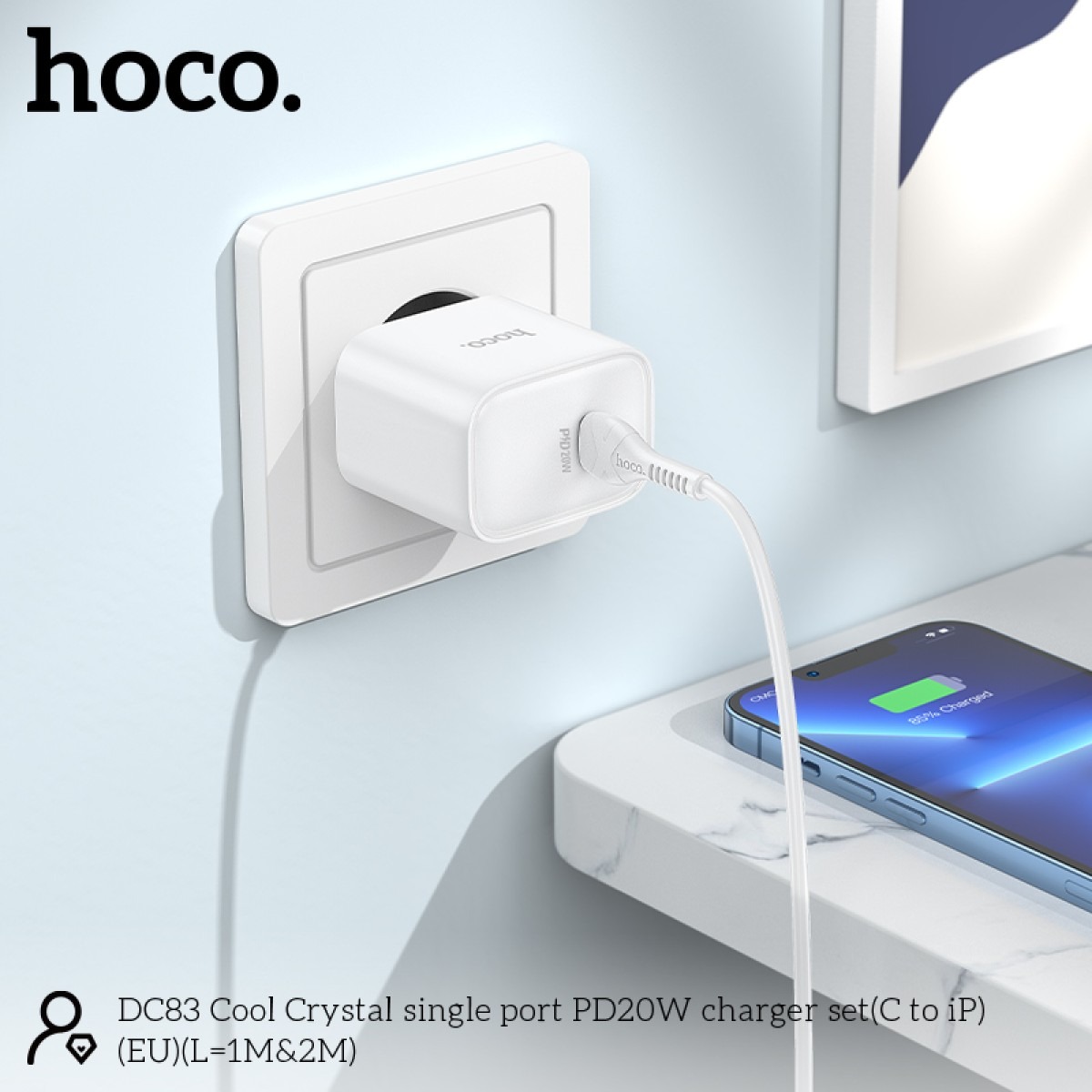 Hoco DC83 PD 20W Type C To iPhone Fast Charger Set – 2 Meter – Wit